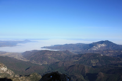 Dupa o plimbare de aproximativ o ora pe curba de nivel, prin padure, am ajuns la partea de urcare a traseului, pe o poteca ce serpuia prin jnepenis si tufisuri. Spre mirarea noastra nici pe panta, nici pana acolo, nu era pic de zapada. Fusese foarte cald saptamana precedenta si zapada se topise, lasand in urma mult noroi. Aerul era caldut, aducea mai mult a primvara decat a iarna pe care o dibuisem cu 2 saptamani in urma.