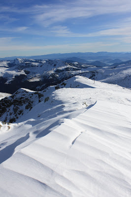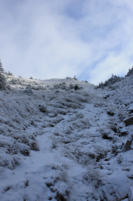 Am inceput sa inaintam catre creasta, urcand catre un varf pe o panta plina de jnepenis incarcat pana la refuz cu zapada.